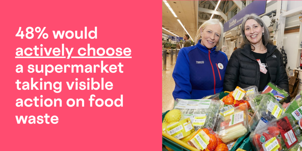 48% would actively choose a supermarket taking visible action on food waste, with a further 23% saying it would probably or might influence their decision